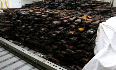 UN inspectors are examining more than 2,500 AK-47 rifles and other guns seized by the crew of a...